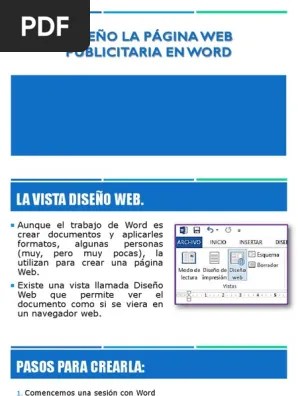 Para convertir un documento word en una página web basta con seguir unos pasos: Función de diseño web en word : 2) desde el menú superior de word, se selecciona el desplegable "archivo" donde se muestran las siguientes opciones: También puedes ampliar la información sobre la función de diseño web en word con un video tutorial y más artículos relacionados …